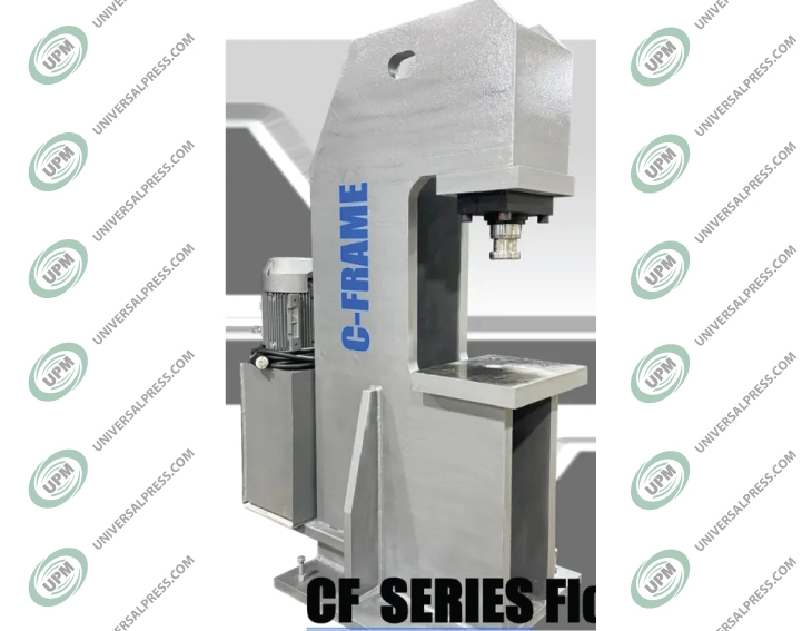 A simple, removable and easily serviceable press mounted press hydraulic system powers the press